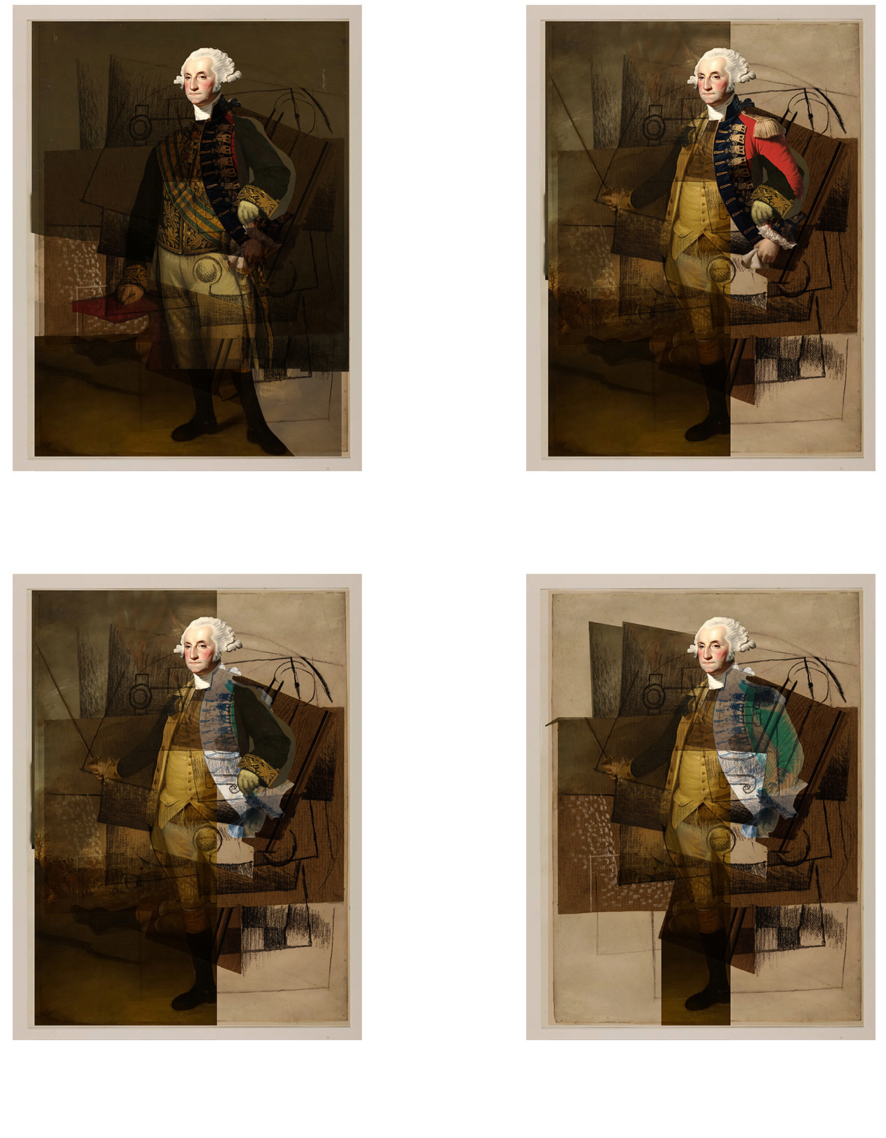Originally, this series was intended to focus on the 2024 presidential candidates. This concept was soon abandoned in favor of George Washington, chosen for his status as the "Father of America" and the universal familiarity of his Athenaeum portrait.