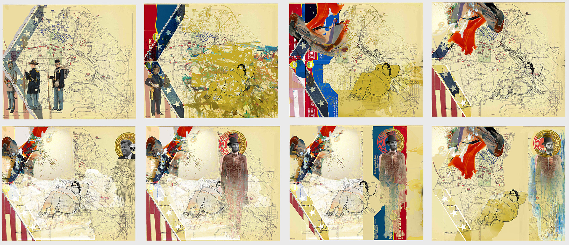 I found a series of maps depicting the day’s events during well-known American Civil War battles. I was transfixed by the ability of the maps to tell a complex story without any supporting text or imagery. It seemed appropriate considering the way my works relying on the chronological snap shots to build a contextual history for the viewer.